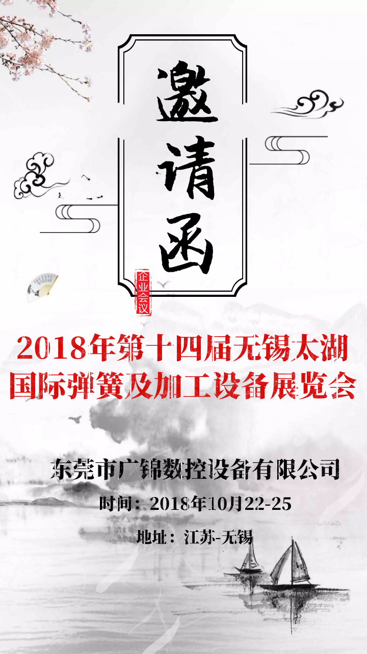 我公司將于10月22日一25日在無錫太湖國際博覽中心參加第十四屆無錫太湖國際彈簧及加工設(shè)備展覽會